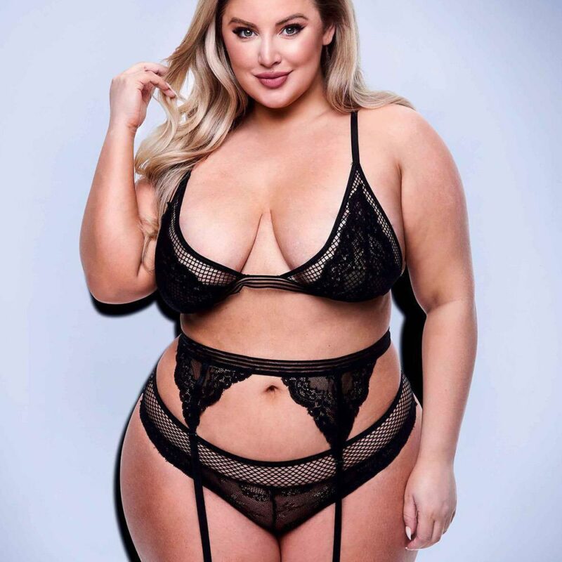 Baci 3Pc Lace & Mesh Bra – juodas apatinio trikotažo komplektas (plius dydis)