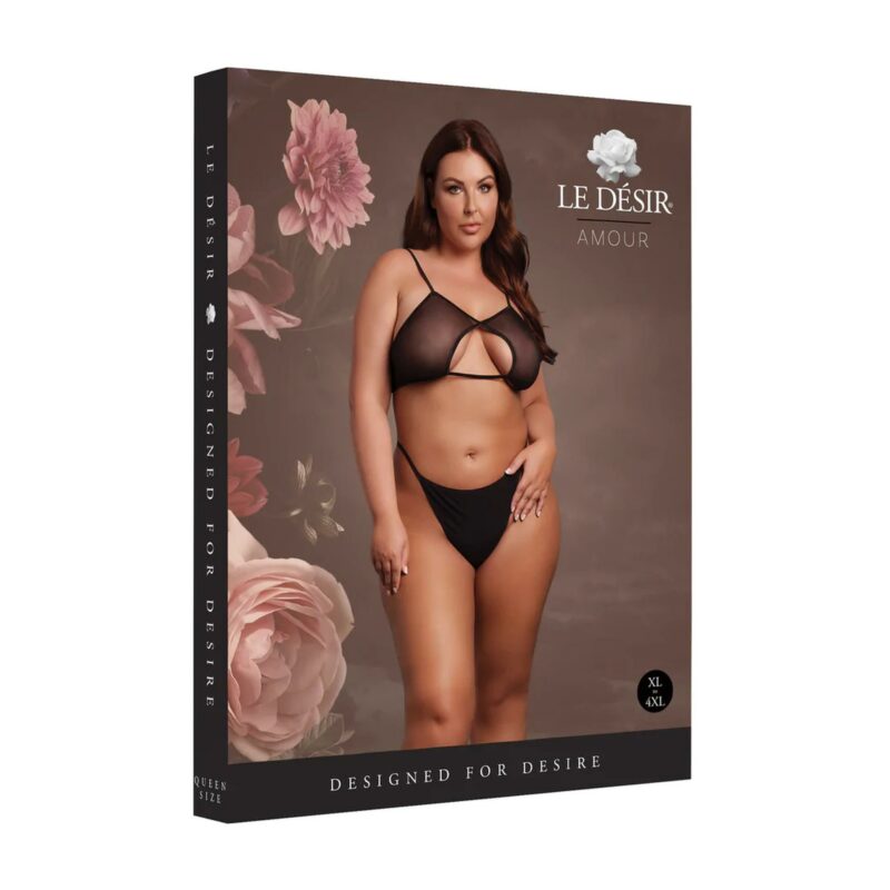 Baci 3 Pcs Eco Peek-A-Boo Bra – juodas apatinio trikotažo komplektas (plius dydis)