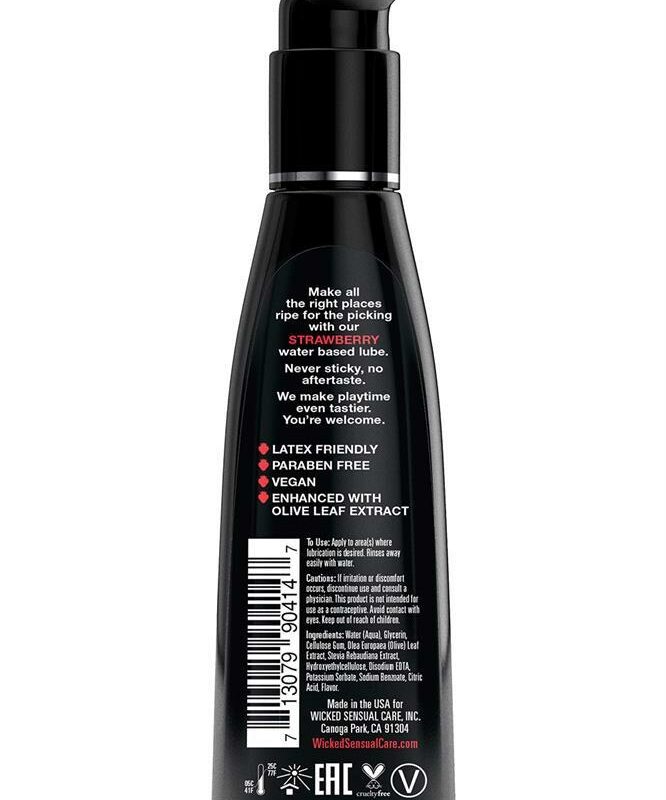 Saldus braškių bučinys jūsų miegamajame. Vandens pagrindo lubrikantas gundantiems oraliniams žaidimams.