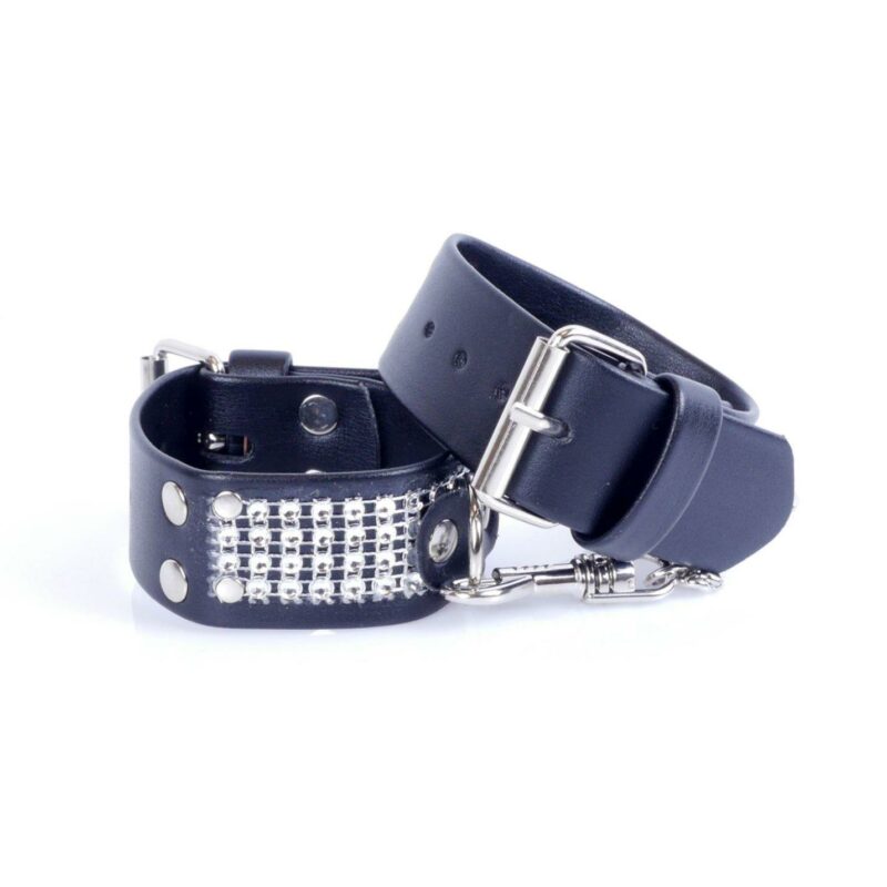 Odiniai antrankiai su kristalais – 3 cm pločio, elegantiški ir BDSM žaidimams, ir erotiniam aksesuarui.