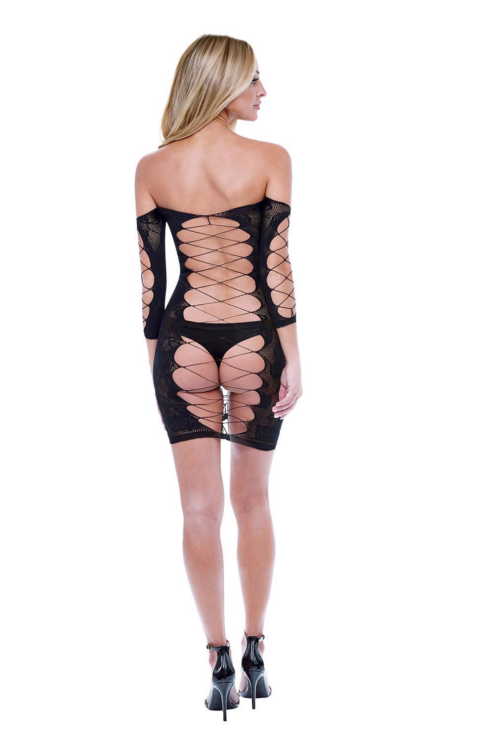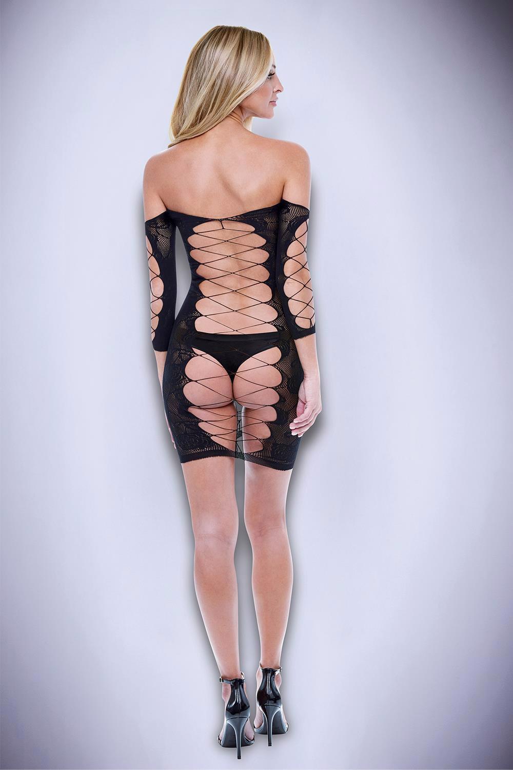 Baci Corset Front Long Sleeve Mini Dress Black – juodas erotiška suknelė (vienas dydis)