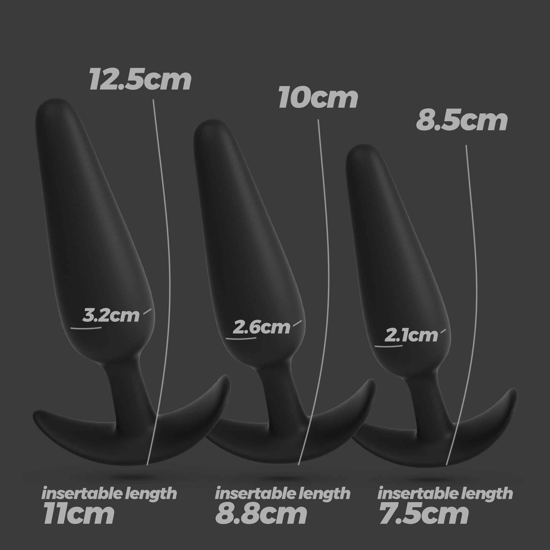 Tobulas rinkinys pradedantiesiems. Trys skirtingi dydžiai jūsų laipsniškam ir saugiam analiniam malonumui.