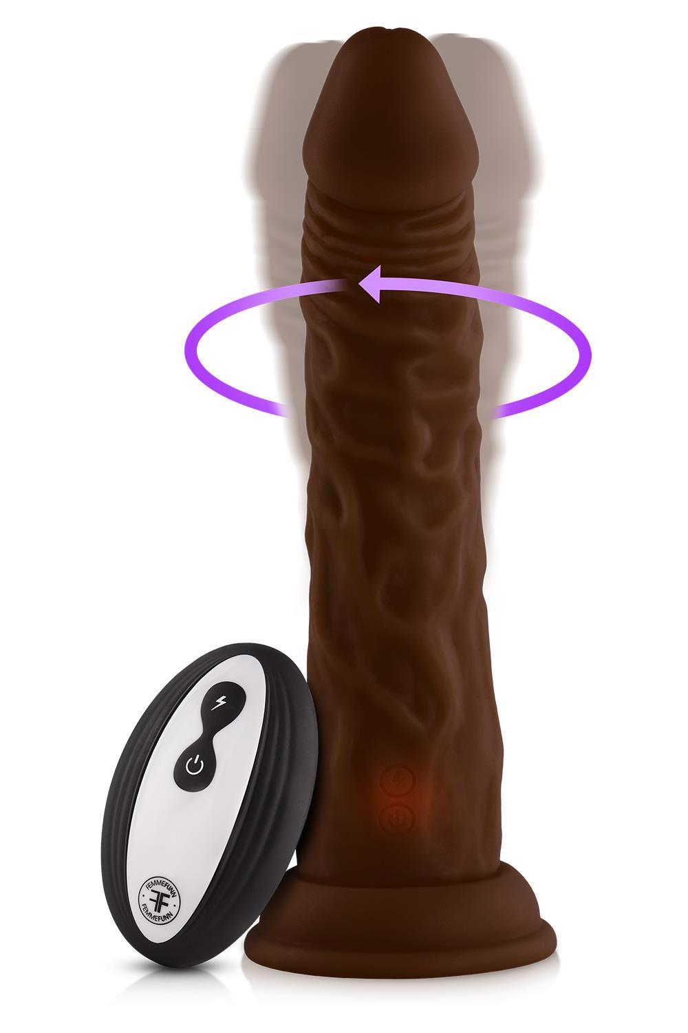 Laisvė bei laidų. Galingas vibruojantis dildo su nuotoliniu valdymu ir siurbtuku.