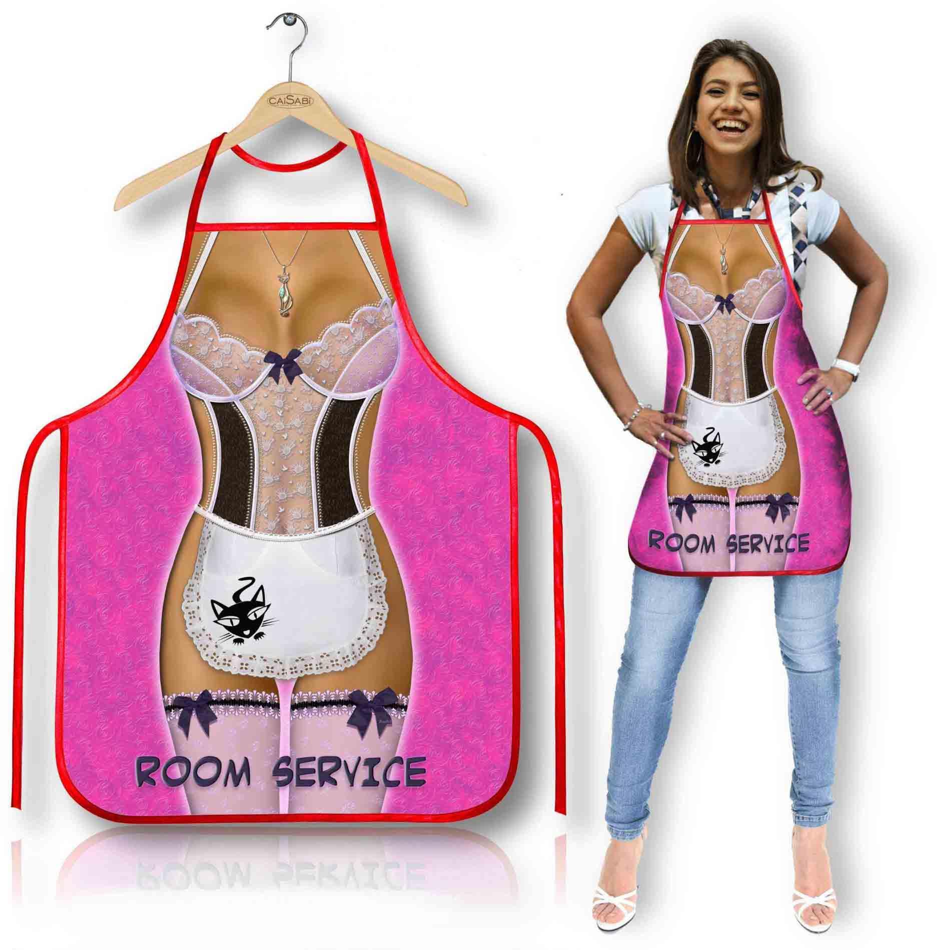 Ši „Kambarių tarnyba“ dizaino prijuostė su gundančiu spaudiniu akimirksniu pakeis atmosferą. Tai ne tik praktiškas aksesuaras virtuvėje, bet ir puiki humoro dovana mergvakariams, bernvakariams ar teminiams vakarėliams. Lengva, patogi ir neįtikėtinai provokuojanti.