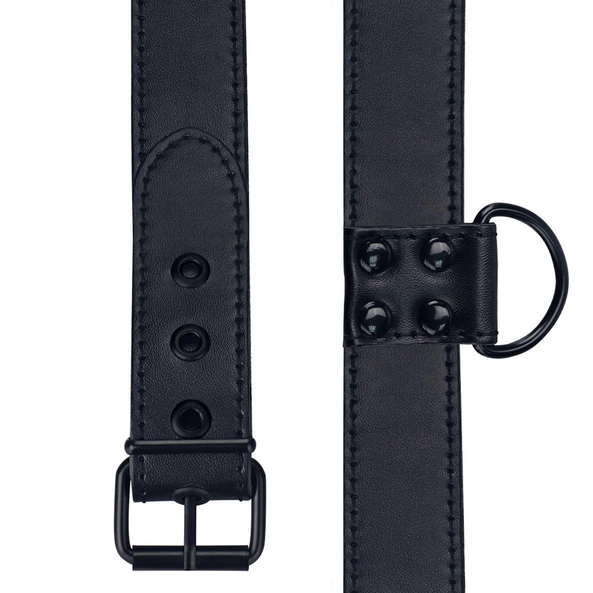 Juoda matinė apykaklė su pavadėliu – paklusnumo ir kontrolės akcentas jūsų BDSM žaidimams.