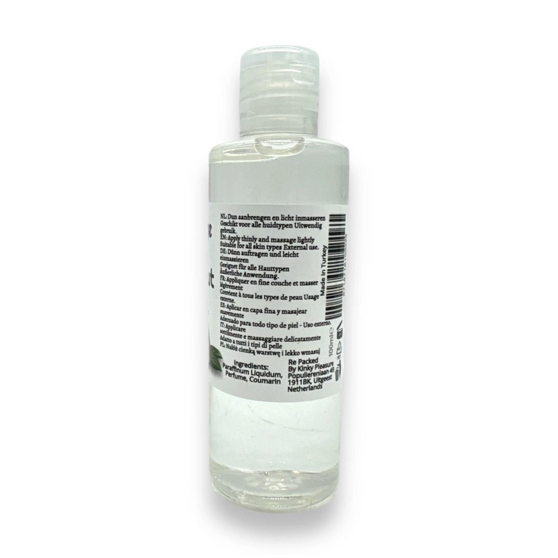 Kinky Pleasure kokosų masažo aliejus 100 ml suvilgo odą, suteikia švelnų slydimo jausmą ir palieka subtilų kokosų aromatą. Puikiai tinka ilgiems kūno masažams, preliudijai ir atpalaiduojančioms intymioms akimirkoms. Galima naudoti visam kūnui, vengiant intymių gleivinių, jei gamintojas nenurodo kitaip.