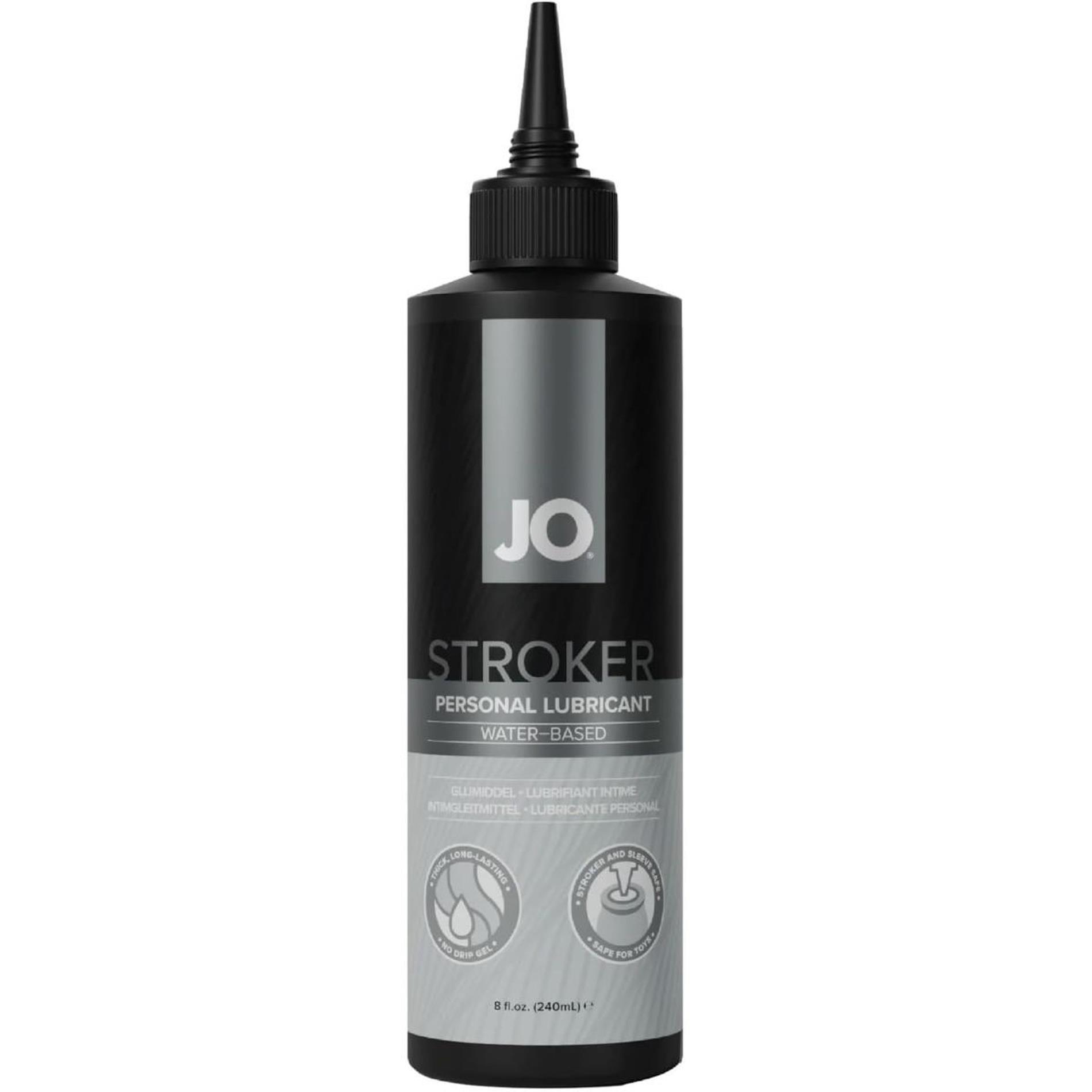 „JO Stroker Lubricant“ 240 ml – didesnė masturbacijos lubrikanto pakuotė tiems, kurie mėgsta dažnus solo žaidimus arba naudoja kelis skirtingus masturbatorius. Formulė suteikia tą patį tirštą, ilgai išliekantį slydimą.