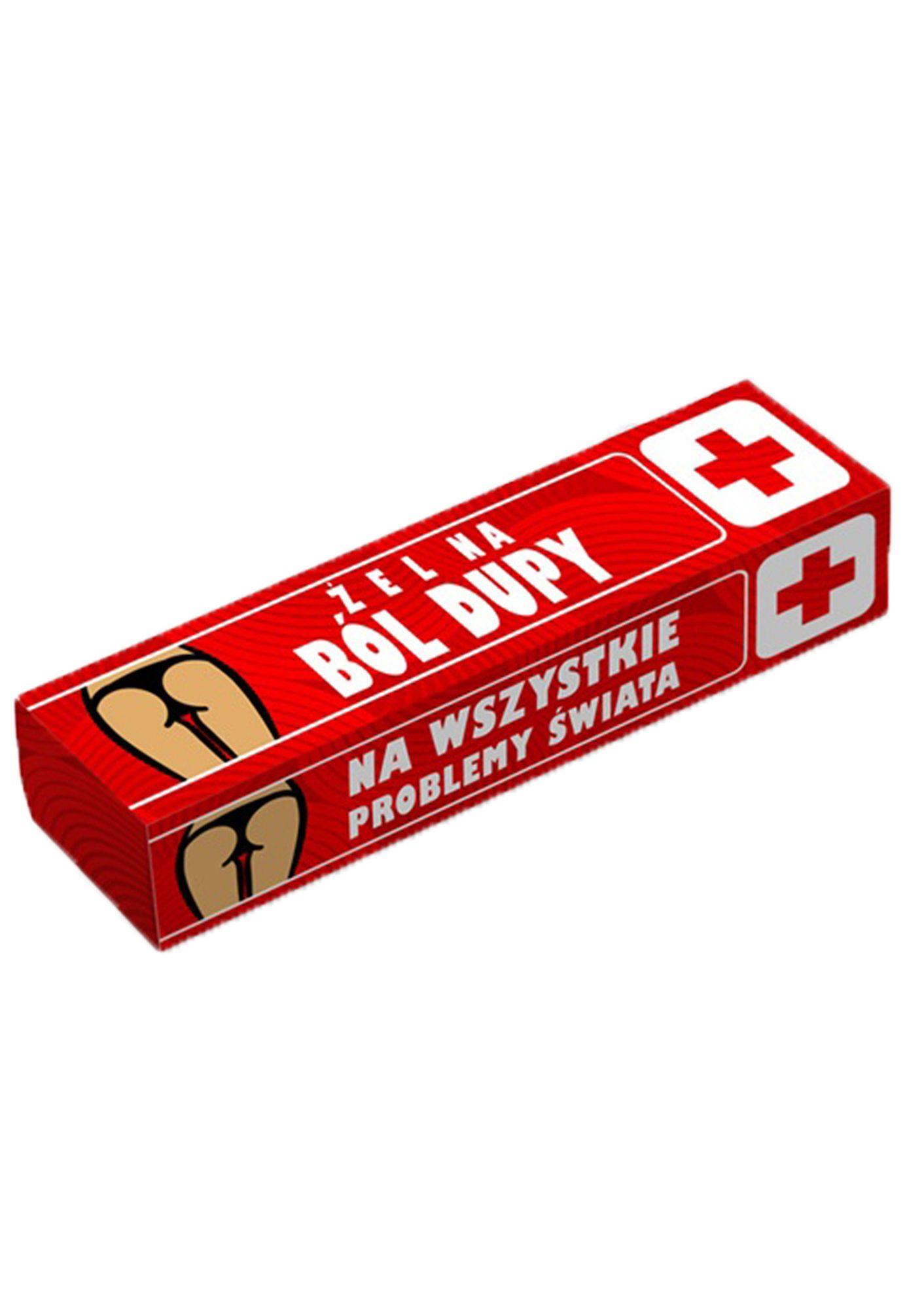 Juokingas skystas muilas su užrašu „Nuo sėdimos vietos skausmo“ – pokštas dovanai.