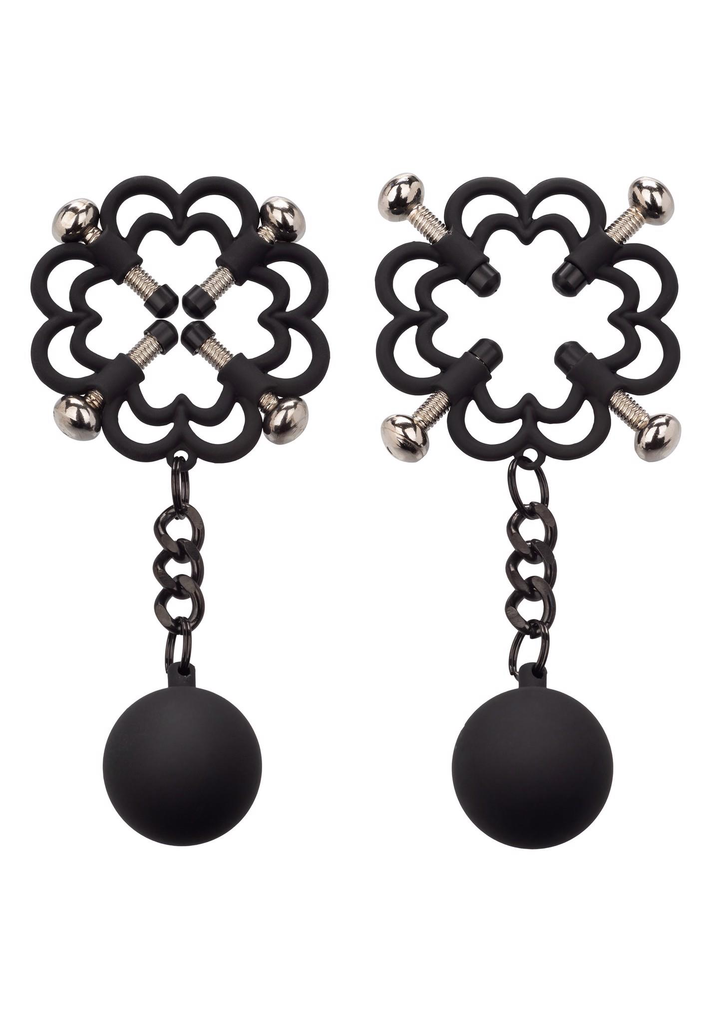 Išbandykite naujas juslingumo ribas su šiais visiškai reguliuojamais spenelių spaustukais. Keturių taškų spaudimo sistema ir papildomi svarmenys suteikia unikalų tempimo pojūtį kuris stiprėja sulig kiekvienu judesiu. Spaustukai padengti minkštu silikonu todėl spaudimas yra tvirtas bet malonus. Puikiai tinka tiek jam tiek jai norint pažadinti snaudžiančią aistrą.